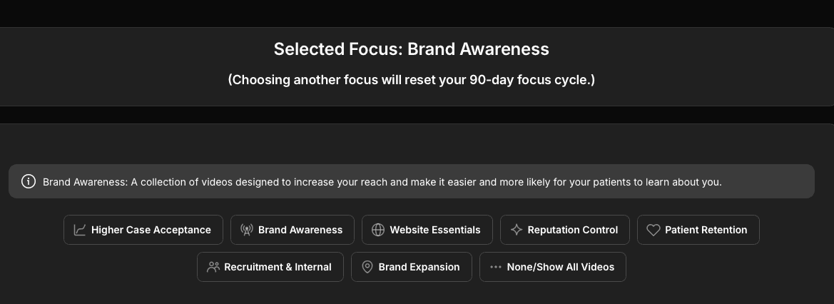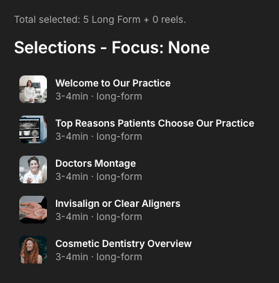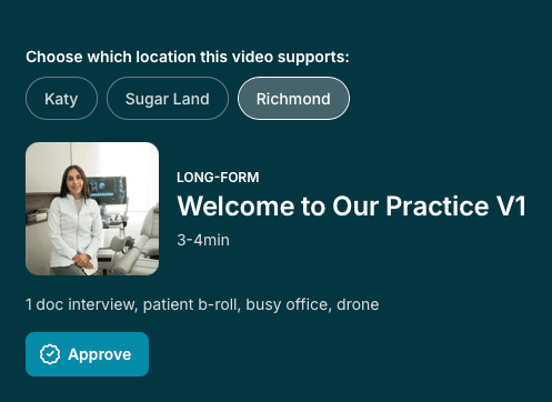 A structured production system designed specifically for multi-location dental organizations, combining strategic filming, modular content deployment, and centralized control through Studio Command OS™.